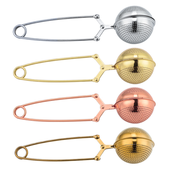 Vendita calda 2025 di alta qualità per uso alimentare 304 in acciaio inox a forma di palla infusore per tè oro rosa manico lungo colino da tè